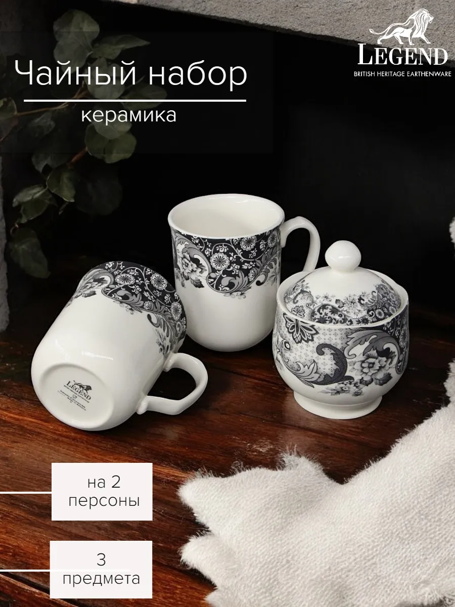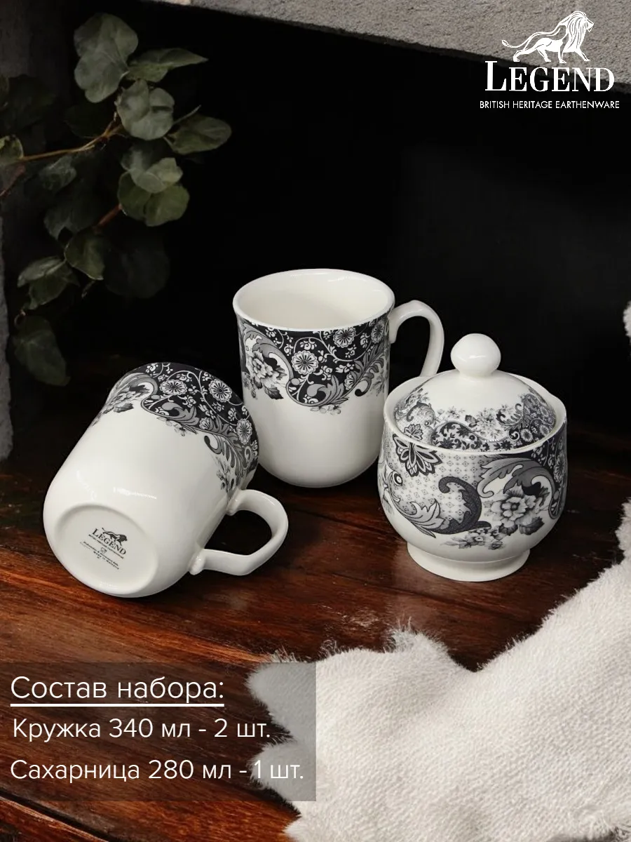 —Набор из двух кружек с сахарницей Claytan LEGEND ROME GREY